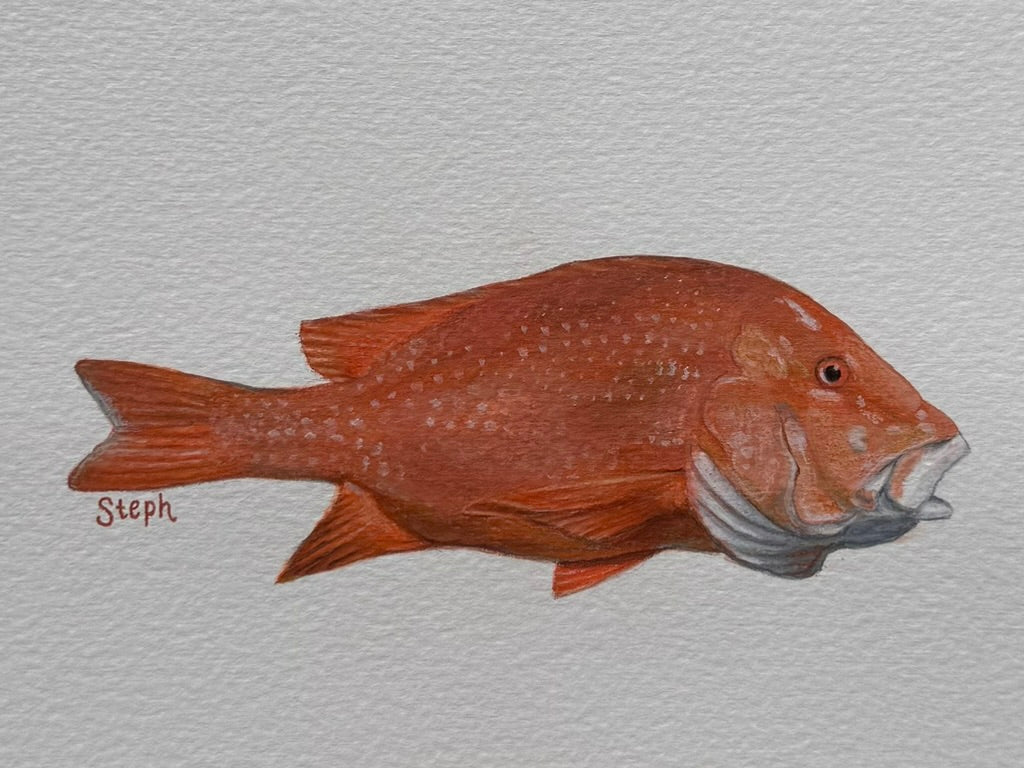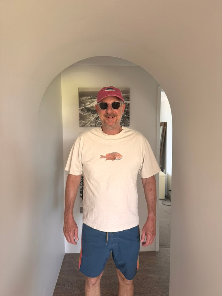 "Red Emperor" was painted on the beaches of Ningaloo in Western Australia.